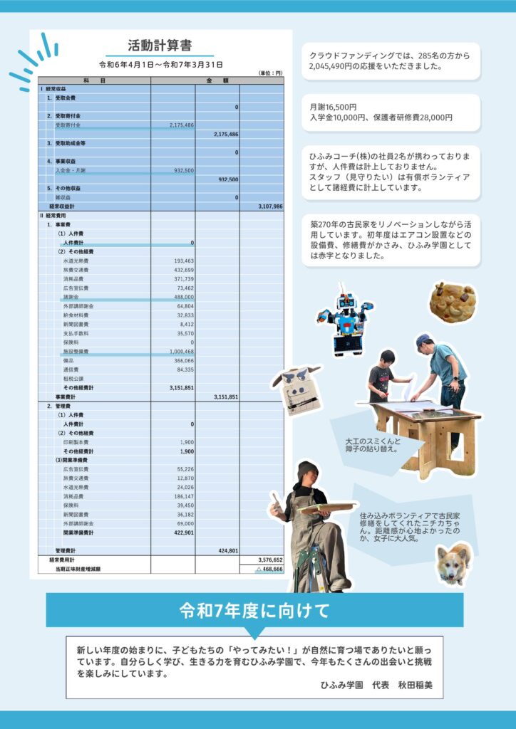 ひふみ学園岩村本校の活動を支えるためにご寄付をお願いします。頂いたご寄付につきましては、運営のために大切に取り扱わせていただきます。